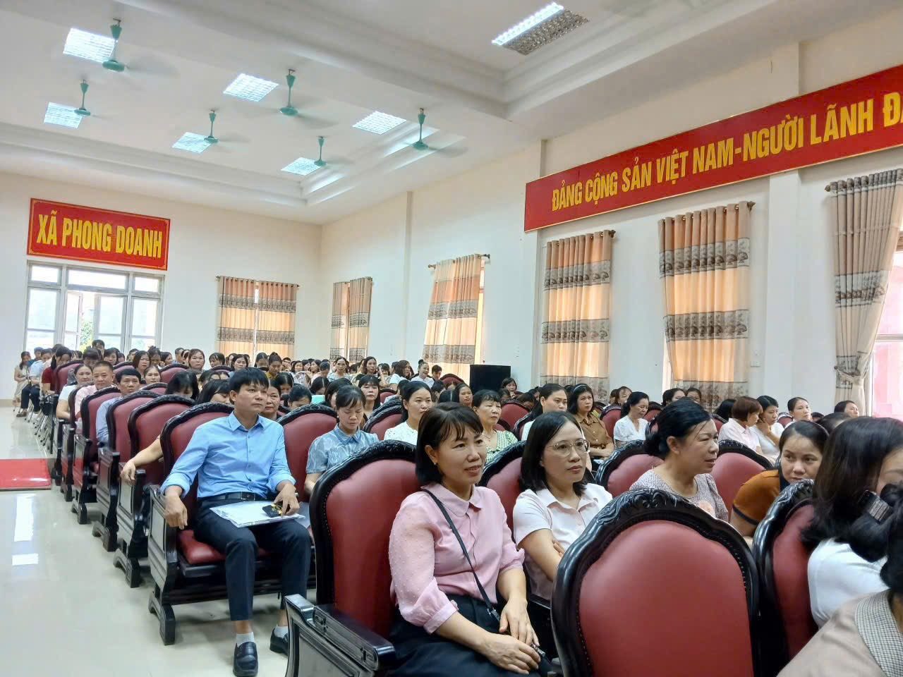 Thực hiện kế hoạch bồi dưỡng chính trị hè năm 2025 cho đội ngũ cán bộ quản lý, giáo viên, nhân viên các trường học, sáng ngày 21/8/2025, tại Hội trường Ủy ban nhân dân xã Phong Doanh đã diễn ra Hội nghị bồi dưỡng lý luận chính trị hè 2025. Hội nghị do Đảng ủy xã Phong Doanh tổ chức, với sự tham dự đông đủ của cán bộ quản lý, giáo viên các nhà trường trên địa bàn.